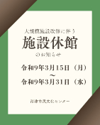 ※休館中、窓口での施設予約・チケット販売も行っておりません。